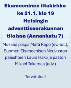 Ekumeeninen iltakirkko ke 21.1. klo 19, Annankatu 7