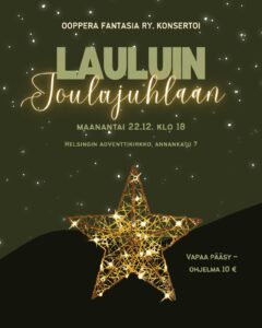 Adventtikirkko, Annankatu 7, Vapaa pääsy. Ohjelma 10€